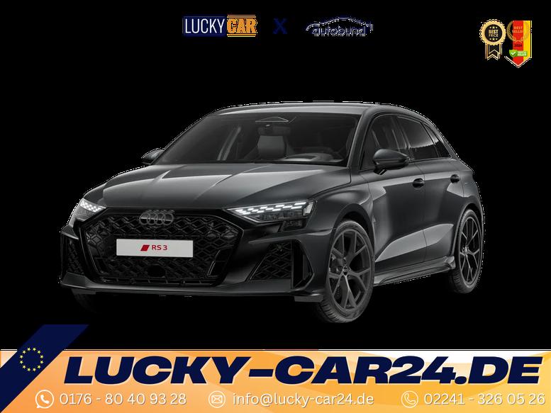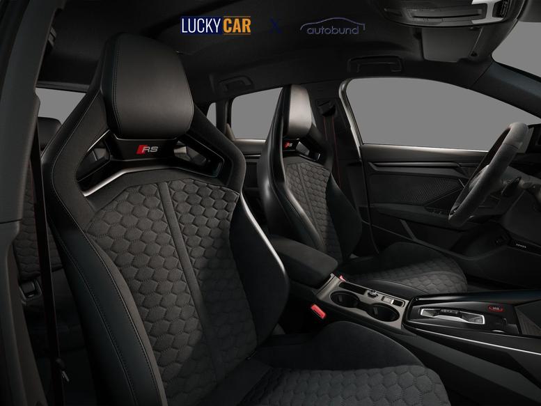 • Optikpaket schwarz plus [RS 3-Schriftzug in Schwarz / Zierleisten an den Seitenscheiben in Schwarz / Audi Ringe vorn und hinten in Anthrazitgrau]