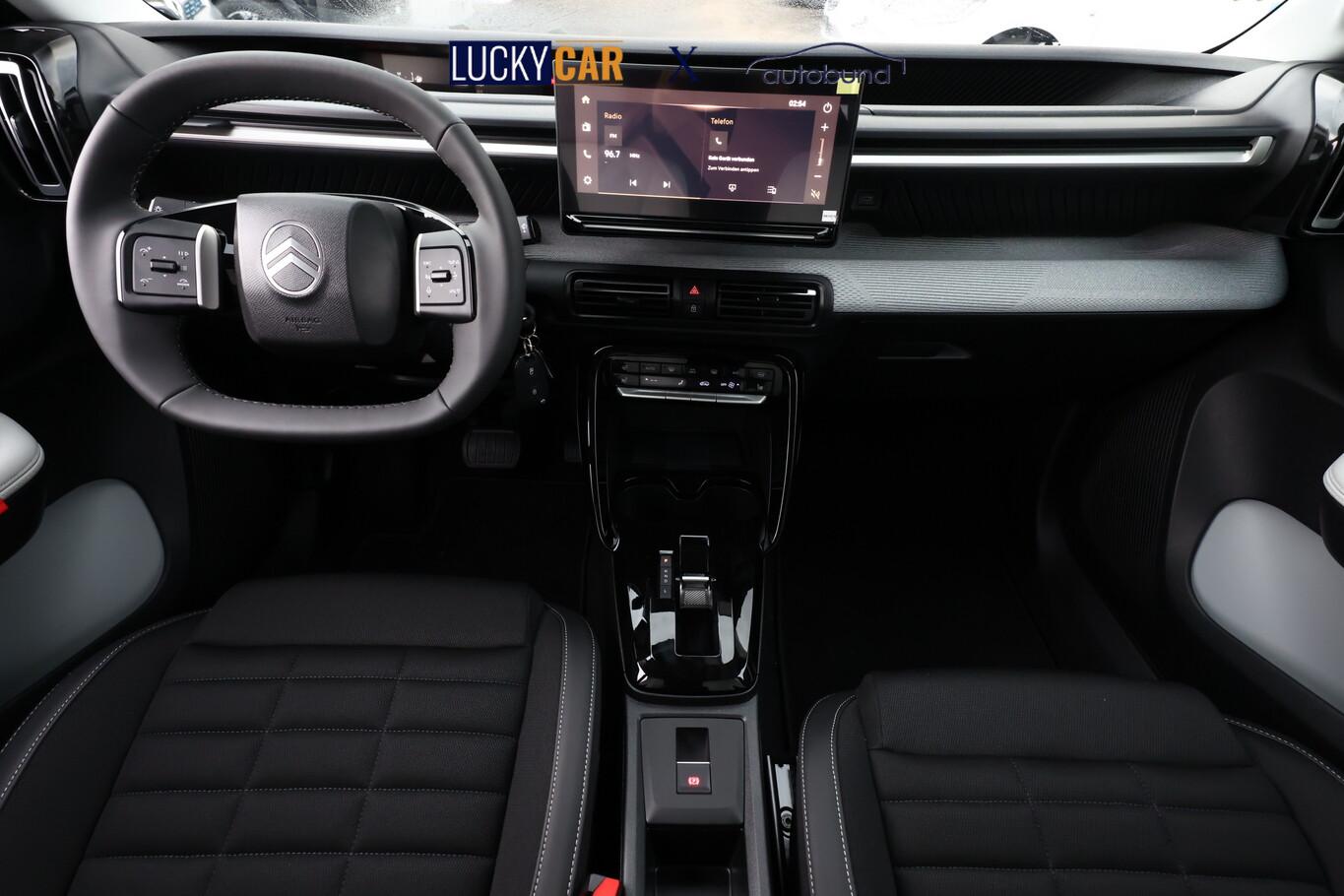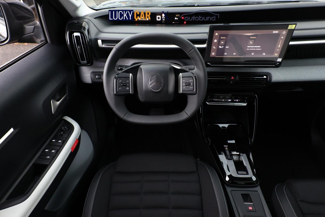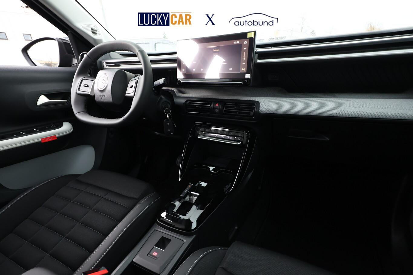 Innenausstattung: Ambiente Metropolitan Grey (Lenkrad heizbar / Sitzheizung vorn / Frontscheibe heizbar / Nebelscheinwerfer LED / Winter-Paket), Anti-Blockier-System (ABS), Audiosystem inkl. 10"-Touchscreen, 6 Lautsprecher, USB-Schnittstelle (Typ C), Elektron. Stabilitäts-Programm (ESP), Fahrassistenz-System: Spurassistent (AFIL), Gepäckraumbeleuchtung, Geschwindigkeits-Regelanlage (Tempomat) inkl. Geschwindigkeits-Begrenzeranlage, Innenraumbeleuchtung LED, Kartentasche an den Rückseiten der Vordersitze, Kindersicherung manuell, Lenkrad mit Multifunktion, Navigation in Verbindung mit dem Smartphone (über Apple Carplay / Android Auto /...), Radioempfang digital (DAB), Reifen 215/60 R17, Schadstoffarm nach Abgasnorm Euro 6e (EU6 EA), Servolenkung, Sitzbezug / Polsterung: Stoff/Kunstleder, Smartphone-Schnittstelle (Apple CarPlay & Android Auto), Verzurrösen im Gepäckraum, Fahrassistenz-System: Automatische Fahrlichtschaltung inkl. Fernlichtassistent (Einschaltautomatik für Fahrlicht), Einparkhilfe hinten inkl. Rückfahrkamera (Rückfahrkamera), Citroen Advanced Comfort Sitze, Heckscheibe heizbar, Heckscheibenwischer, Karosserie: 5-türig, Lenksäule (Lenkrad) mech. höhen-/längsverstellbar, Mild-Hybrid 107 kW (Motor 1,2 Ltr. - 100 kW), Parkbremse elektrisch, Radstand 2670 mm, Sitz vorn links höhenverstellbar, Stahlfelgen 7x17, Steckdose (12V-Anschluß) in Mittelkonsole vorn, Antriebsart: Frontantrieb, Getriebe Automatik - Doppelkupplungsgetriebe (6-Stufen, Hybrid), Klimaautomatik, Airbag Beifahrerseite abschaltbar, Airbag Fahrer-/Beifahrerseite, Kopf-Airbag-System und Seitenairbag, Fensterheber elektrisch hinten, Fensterheber elektrisch vorn, Isofix-Aufnahmen für Kindersitz an Rücksitz, Rücksitzlehne geteilt/klappbar 1/3-2/3, Seitenscheiben hinten und Heckscheibe dunkel getönt, Zentralverriegelung mit Fernbedienung, Head-up-Display (Kombiinstrument hochgesetzt), Dachreling schwarz, Fahrassistenz-System: Verkehrszeichenerkennung, Außenspiegel elektr. verstell-, heiz- und anklappbar, Scheibenwischer mit Regensensor, Scheinwerfer Eco-LED, Tagfahrlicht LED, Reifendruck-Kontrollsystem