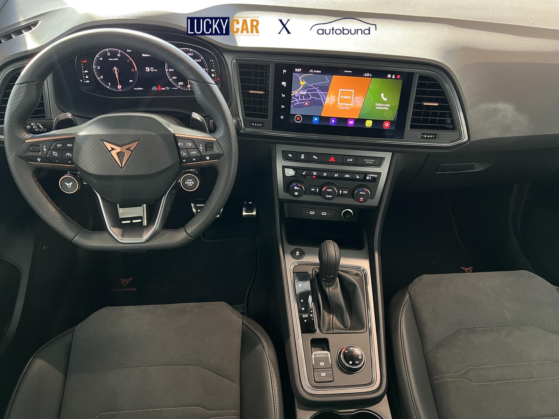 Digital Cockpit Plus, Keyless Entry, LED-Innenbeleuchtung, Navigationssystem mit 9,2“ Touchscreen, Parklenkassisten inkl. PDC vorne und hinten, abgedunkelte Seitenscheiben ab der B-Säule, Dinamica Sport-Sitze, Full-LED-Scheinwerfer inkl. LED Tagfahrlicht, XDS, Verkehrszeichenerkennung, Spurhalteassistent, 2* USB-C vorne und 2* hinten, Start Stopp Funktion ,Seitenairbags vorne, Rücksitzlehne geteilt umklappbar, Reifendruckkontrolle, Müdigkeitserkennung, Mittelarmlehne vorne, Lendenwirbelstütze vorne, Multifunktionssportlederlenrkad beheizber inkl. Schaltwippen, LED-Rückleuchten mit dynamischen Blinker, LED Nebelscheinwerfer mit Abbiegefunktion, Ambientebeleuchtung Multicolour, Kopfairbags vorne, ISOFIX, Front Assist, elektrische Fensterheber vorne und hinten, ESP, el. Handbremse, Licht und Regensensor, e-Call, DAB, Dachreling schwarz, Cupra Full Link, Fahrerprofil, Bluetooth inkl. Handykopplung, Berganfahrassistent, Außenspiegel el. verstell-, beheiz- und anklappbar, ABS, ASR, Fahrer- und Beifahrerairbag, 2-Zonen-Climatronic, uvm.
