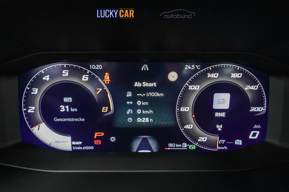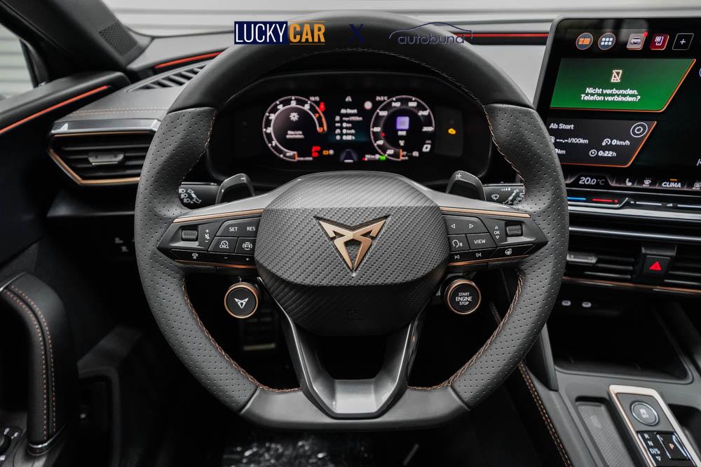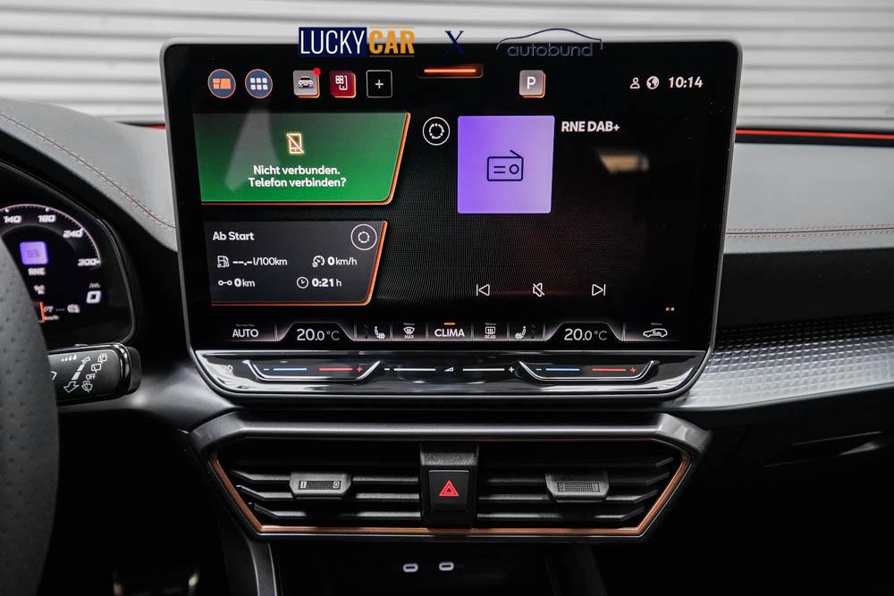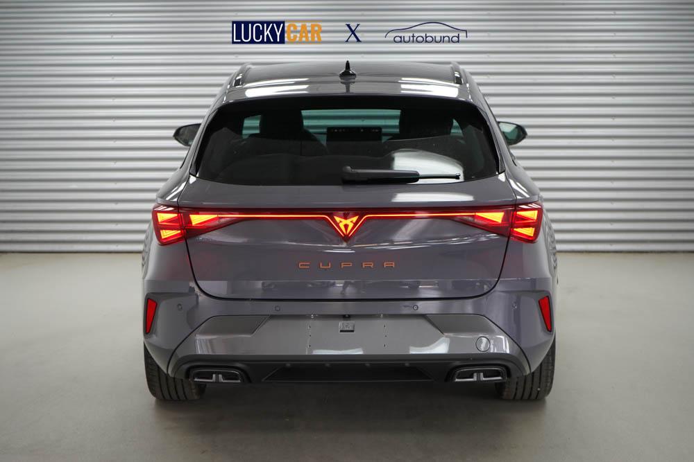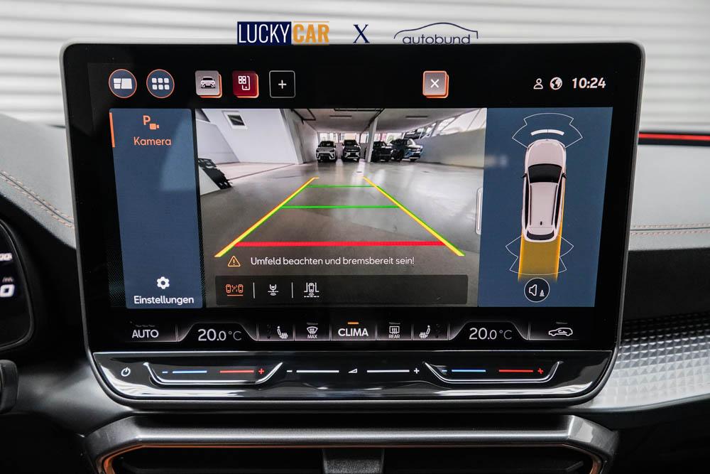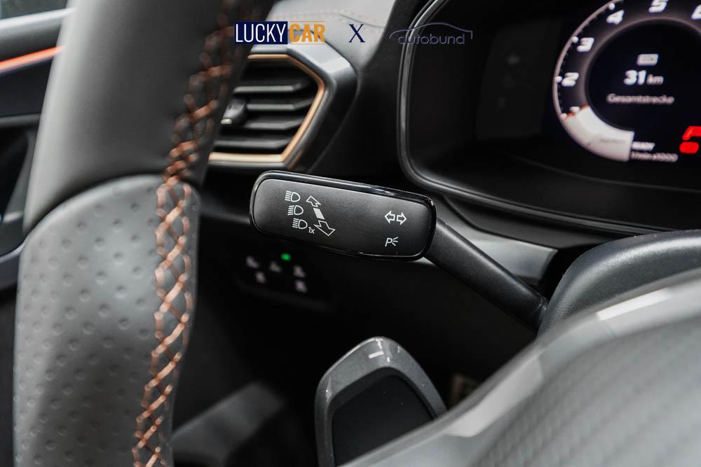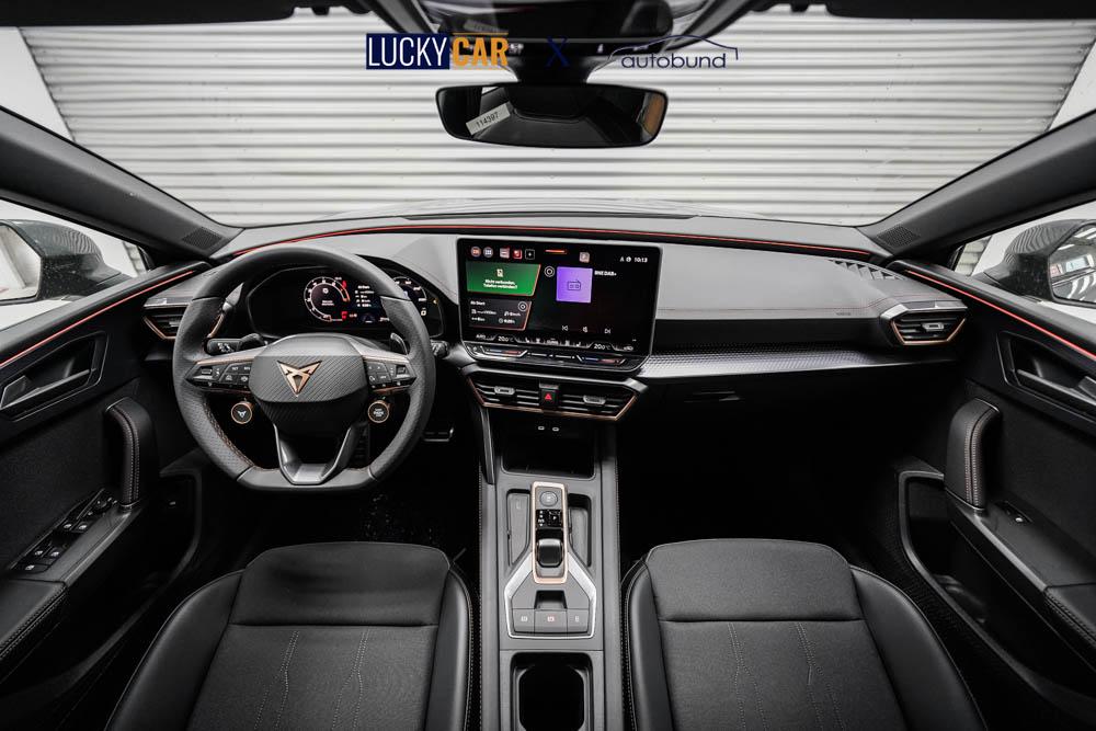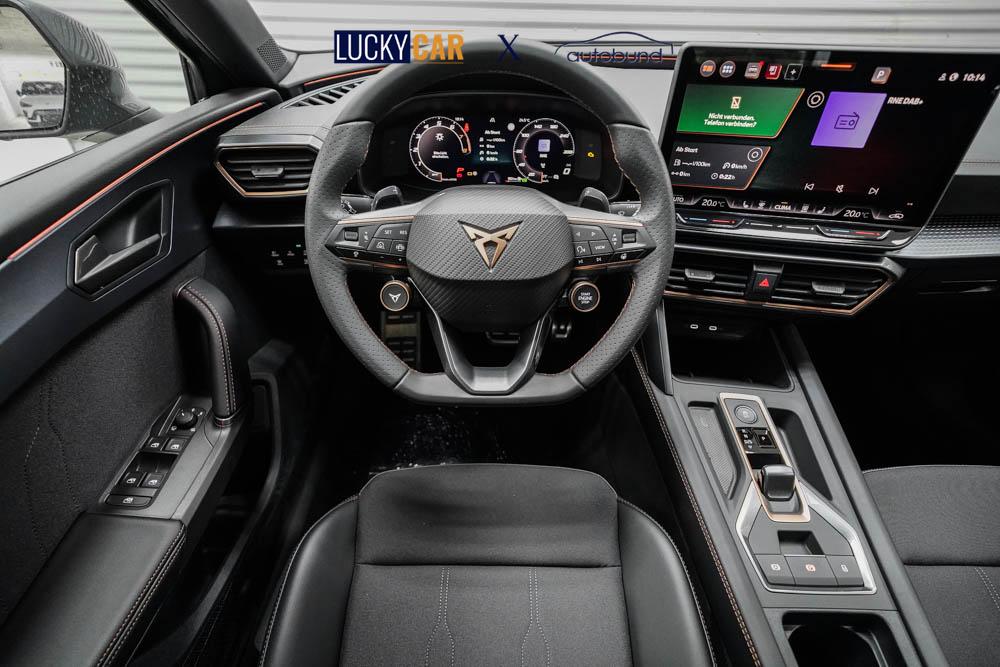 Beifahrersitz höhenverstellbar, Fahrersitz höhenverstellbar, Lederlenkrad, Sitzbezug Stoff, Lenkrad höhenverstellbar, Smart Wraparound Light, Beheizbares Lenkrad, Multifunktionslenkrad mit Satellitenknöpfen, Isofix, abgedunkelte Scheiben, 18 Zoll Alufelgen Garbi, Dachreling schwarz, ABS, Alarmanlage, Außenspiegel elektrisch anklappbar, Fensterheber elektrisch, Kopfairbags, Seitenairbags, Servolenkung, Sitzheizung, ESP, Wegfahrsperre, Zentralverriegelung mit Funk, Beifahrerairbag, Fahrerairbag, Parkpilot hinten, Parkpilot vorne, Reifendruckkontrolle, Digital Cockpit, Anhängekupplung schwenkbar, Tempomat Abstand ACC, Fernlichtassistent, Full LED Scheinwerfer, LED-Tagfahrlicht, Rückfahrkamera, Elektrische Heckklappe inkl. Virtual Pedal, KeylessEntry, StartStopSystem, Notrufsystem, Klimaautomatik 3-Zonen, Android Auto, Apple Carplay, Freisprecheinrichtung, Induktionsladestation, USB, Radio, Radio DAB, Bluetooth, Bordcomputer, Cupra Full Link, variabler Ladeboden,