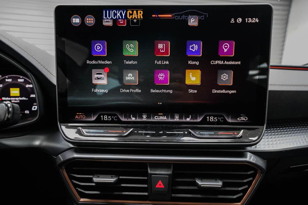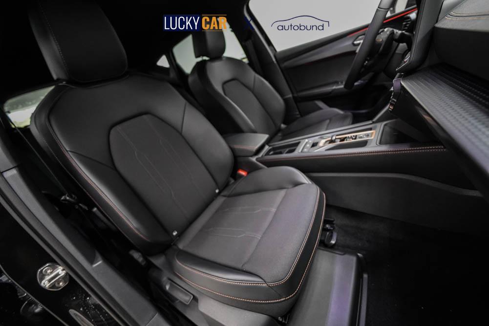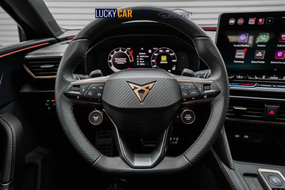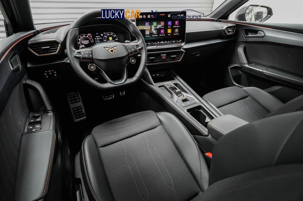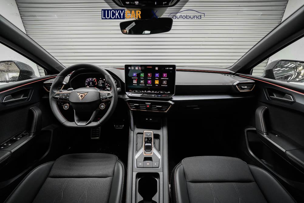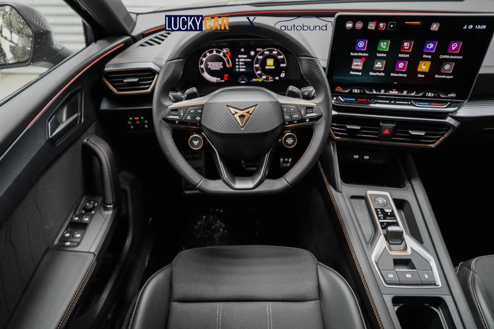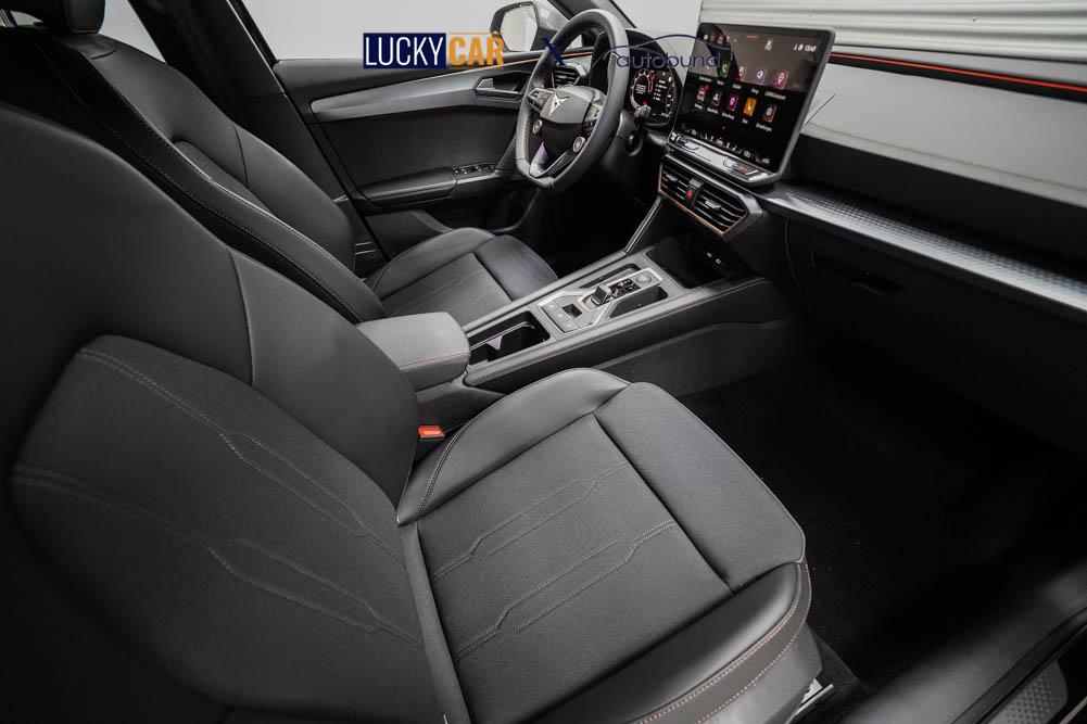 Beifahrersitz höhenverstellbar, Fahrersitz höhenverstellbar, Lederlenkrad, Lendenwirbelstütze, Mittelarmlehne vorne, Sitzbezug Stoff, Gepäckraumabdeckung, geteilt umklappbare Rücksitzlehne, Lenkrad höhenverstellbar, Smart Wraparound Light, Multifunktionslenkrad, Isofix, Isofix Beifahrersitz, abgedunkelte Scheiben, 18 Zoll Alufelgen Garbi, ABS, Alarmanlage, Außenspiegel elektrisch anklappbar, Fensterheber elektrisch, Kopfairbags, Nebelscheinwerfer, Seitenairbags, Servolenkung, Sitzheizung, ESP, Wegfahrsperre, Außenspiegel beheizbar, Beifahrerairbag, Fahrerairbag, Parkpilot hinten, Parkpilot vorne, Reifendruckkontrolle, Regensensor, Lichtsensor, Digital Cockpit, Tempomat Abstand ACC, Fernlichtassistent, Spurhalteassistent, Verkehrszeichenerkennung, Full LED-Scheinwerfer, Tagfahrlicht LED, Pannenset, Rückfahrkamera, KeylessEntry, StartStopSystem, Innenspiegel automatisch abbl., Müdigkeitswarnsystem, Notrufsystem, Schaltwippen, Klimaautomatik 3-Zonen, Geschwindigkeitsbegrenzer, Android Auto, Apple Carplay, Freisprecheinrichtung, Induktionsladestation, Sprachsteuerung, USB, Radio, Radio DAB, Bluetooth, Bordcomputer, Cupra Full Link, Keyless-Go,