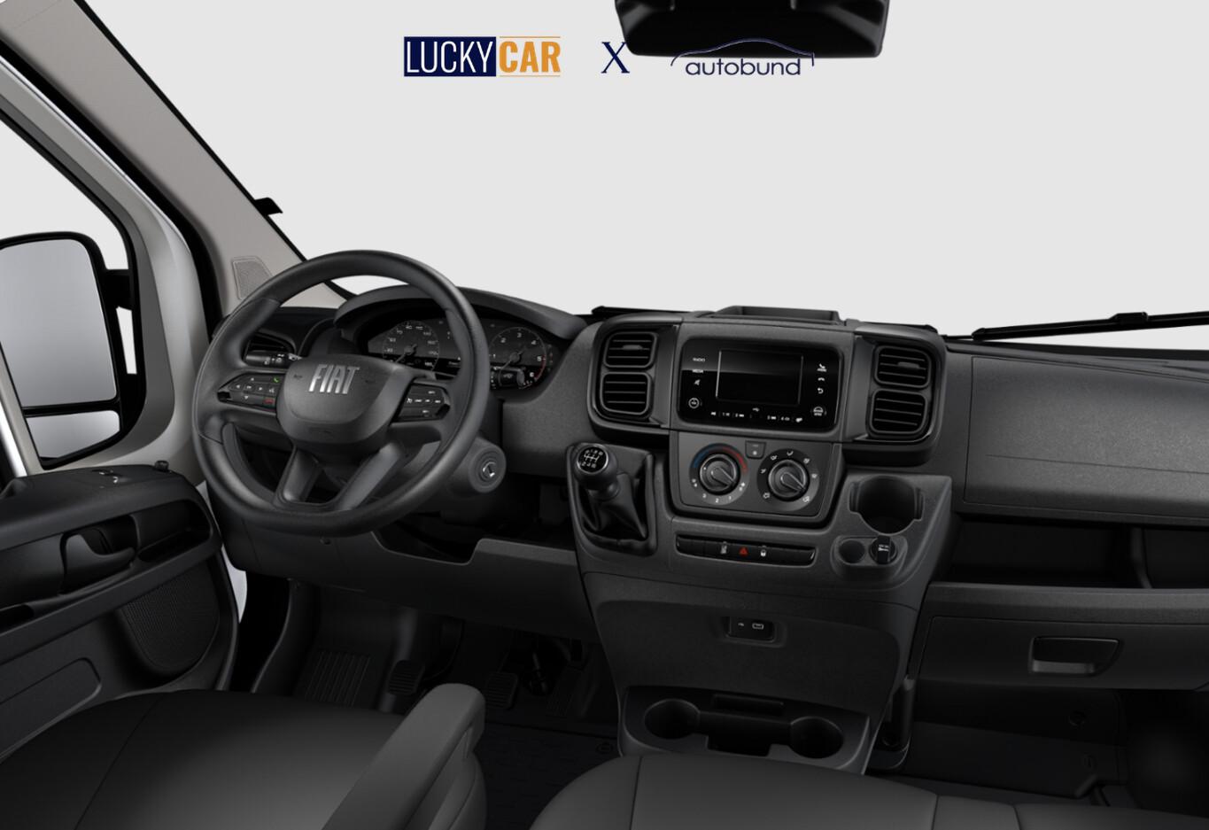 Klimaanlage, Infotainment-System mit 5" Farbdisplay, DAB und Bluetooth-Schnittstelle, Fahrassistenz-System: Spurhalteassistent, Geschwindigkeits-Regelanlage (Tempomat) inkl. Geschwindigkeits-Begrenzeranlage, Airbag Beifahrerseite, Licht- und Regensensor, Laderaumtrennwand, Reifendruck-Kontrollsystem, Nebelscheinwerfer, Außenspiegel elektr. verstell- und heizbar, Hinterachse verstärkt (Federung), Reserverad vollwertig (inkl. Ersatzradhalter), Verkleidung im Lade-/FG-Raum: halbhoch (bis Gurthöhe), Ablage im Dachhimmel Fahrerhaus, Kraftstofftank: 90 Ltr., 12V-Steckdose vorn, Bedienhebel am Lenkrad, Blinkleuchten in Außenspiegel integriert, Bordcomputer, Diebstahlsicherung (Fiat Code), Einparkhilfe hinten, Fahrersitz mit Lendenwirbelstütze und Armlehne, Gurtwarnanlage, Handschuhfach, Heckflügeltüren (Öffnungswinkel 180 Grad), Innenraumbeleuchtung vorn, Kopfstützen höhenverstellbar, Lenkrad (Lenksäule) verstellbar, Reifen 215/70 R15, Rückfahrkamera, Schadstoffarm nach Abgasnorm Euro 6e (EU6 EA), Servolenkung, Sitz vorn links höhenverstellbar, Sitzbezug / Polsterung: Stoff, Stahlfelgen 15 Zoll, Tagfahrlicht, Verglasung wärmedämmend, Verzurrösen, Elektron. Stabilitäts-Programm (ESP) (Antriebs-Schlupfregelung (ASR) / Fahrassistenz-System: Berganfahr-Assistent), Heckflügeltüren ohne Verglasung, Karosserie/Aufbau: Kasten Grossraum Standard, Karosserievariante: Hochdach, Motor 2,2 Ltr. - 103 kW Turbodiesel Multijet, Radstand 4035 mm, Schiebetür Lade-/Fahrgastraum rechts, Sitze im Fahrerhaus: Beifahrerdoppelsitz, Anti-Blockier-System (ABS), Antriebsart: Frontantrieb, Getriebe 6-Gang, Airbag Fahrerseite, Fensterheber elektrisch vorn, Zentralverriegelung mit Fernbedienung, Rußpartikelfilter, Start/Stop-Anlage Motor