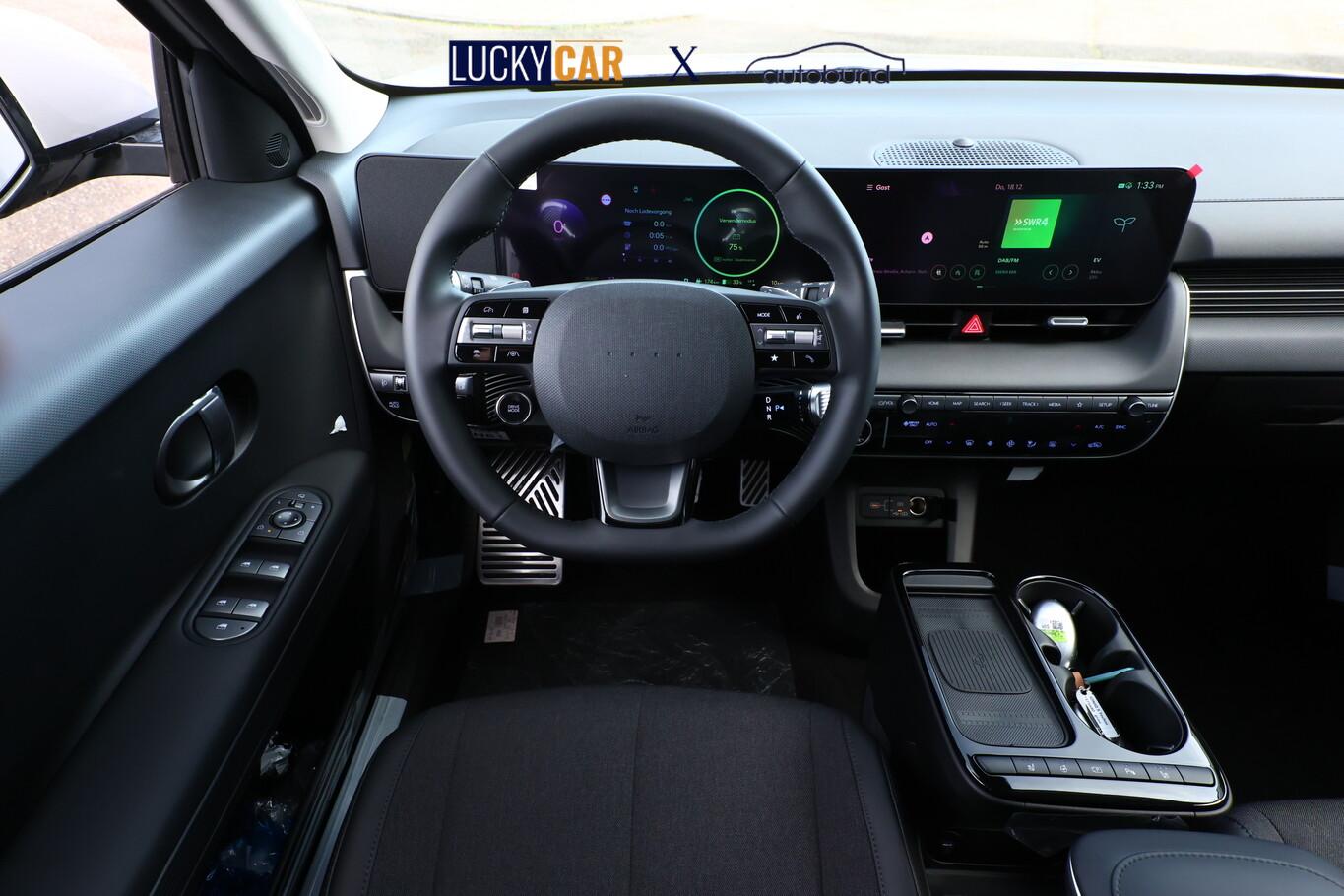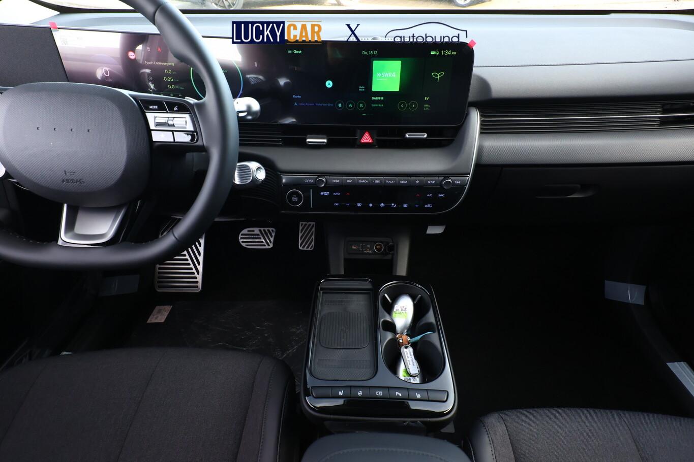 Ambientebeleuchtung, Fahrassistenz-System: Spurwechselassistent, Fahrassistenz-System: Totwinkel-Assistent (BCA), Kein Ladekabel vorhanden, LED-Scheinwerfer, LM-Felgen 19 Zoll, Reifen 235/55 R19, SmartLink (Apple CarPlay & Android Auto), Dachspoiler (grosse Ausführung) (3. Bremsleuchte), Audio-Navigationssystem (Touchscreen-Farbdisplay (12,25 Zoll)), Lenkrad (Leder) 3-Speichen (Lenkrad heizbar / Lenkrad (Leder) / Lenkrad (Leder) mit Multifunktion), Fahrassistenz-System: Einparkhilfe vorn und hinten (Einparkhilfe hinten), Fahrassistenz-System: Autonome Notbremsfunktion inkl. Frontkollisionswarnung (FCA) (Fahrassistenz-System: Ausweich-Assistent (Evasive Steer Assistance, ESA) / Fahrassistenz-System: Ausweich-Assistent Fahrtrichtung (FCA-LS) / Fahrassistenz-System: Ausweich-Assistent Gegenverkehr (FCA-LO) / Fahrassistenz-System: Autonome Notbremsfunktion inkl. Abbiegefunktion (FCA-JT) / Fahrassistenz-System: Autonome Notbremsfunktion inkl. Fahrradfahrererkennung (FCA-Cyc.) / Fahrassistenz-System: Autonome Notbremsfunktion inkl. Fußgängererkennung (FCA-Ped.) / Fahrassistenz-System: Querverkehrs-Assistent vorn (Kreuzungs-Assistent)), Außenspiegel Unterschale schwarz lackiert, Batterieheizsystem, Elektromotor 168 kW (cont. 56 kW), Fahrassistenz-System: Autobahnassistent 2.0 (Highway Driving Assist, HDA 2.0), Fahrassistenz-System: Insassenalarm (RSA), Fahrassistenz-System: Multikollisionsbremse (Multi Collision Brake), Geschwindigkeits-Begrenzeranlage (Speed-Limiter), Heckscheibe heizbar, Heckscheibenwischer, HV-Batterie 84 kWh (Lithium-Ionen), Induktionsladeschale für Smartphone, Innenspiegel mit Abblendautomatik, Instrumentenanzeige Farbdisplay 12,25 Zoll, Karosserie: 5-türig, Kopfstützen hinten verstellbar, Ladevorrichtung On-Board-Lader (3-Phasen), Lendenwirbelstütze Sitz vorn links, elektr. verstellbar, Lendenwirbelstütze Sitz vorn rechts, elektr. verstellbar, Lenksäule (Lenkrad) höhenverstellbar, Lenksäule (Lenkrad) längsverstellbar, Mittelarmlehne hinten, Parkbremse elektrisch (EPB), Pedale Aluminium, Radioempfang digital (DAB+), Stoßfänger vorn mit Applikationen (schwarz), Türgriffe außen ausfahrbar / versenkbar, elektrisch, Türgriffe außen Wagenfarbe, Wärmepumpe für Heizungs-/Klimaanlage, Audiosystem: Radio RDS, USB-Anschluss (Typ C), USB-Anschluss hinten (Typ C), USB-Anschluss Mittelkonsole, Anti-Blockier-System (ABS), Antriebsart: Heckantrieb, Elektron. Stabilitätskontrolle (ESC) mit Bremsassistent, Getriebe für Elektrofahrzeug, Klimaautomatik 2-Zonen, Airbag Beifahrerseite, Airbag Beifahrerseite abschaltbar, Airbag Fahrerseite, Fensterheber elektrisch vorn und hinten, mit Auf-/Ab-Automatik, Isofix-Aufnahmen für Kindersitz, Kopf-Airbag-System, Mittelarmlehne vorn verschiebbar, Rücksitzlehne geteilt/klappbar, Seitenairbag vorn, Seitenairbag vorn mitte (Central Airbag), Sitz vorn links elektr. verstellbar, Sitz vorn rechts elektr. verstellbar, Sitzbezug / Polsterung: Stoff/Leder, Sitzheizung hinten, Sitzheizung vorn, Smart-Key, Verglasung hinten abgedunkelt (Privacy Glass), Zentralverriegelung mit Fernbedienung, Heckklappe/-Deckel elektr. betätigt (Öffnung, sensorgesteuert), Fahrassistenz-System: Berganfahrhilfe, Fahrassistenz-System: Verkehrszeichenerkennung, erweitert (Geschwindigkeits-Regel-/Begrenzeranlage), Geschwindigkeits-Regelanlage (Tempomat) mit Abstandsregelung ACC, Navigationsbasierte Adaptive Geschwindigkeitsregelanlage (Tempomat) mit Abstandsregelung (NSCC), Rückfahrkamera, Fahrassistenz-System: Sicherheitssystem mit automatischem Notruf (ERA GLONASS / eCall), Service-System: Remote Services (Blue Link), Lenkrad mit Schaltwippen, Außenspiegel elektr. anklappbar, Außenspiegel elektr. verstell- und heizbar, beide, Einschaltautomatik für Fahrlicht / Lichtsensor, Fahrassistenz-System: Fernlichtassistent, Heckleuchten LED (Pixel-Design), Scheibenwischer mit Regensensor, Fahrassistenz-System: aktiver Spurhalteassistent (LKAS, Lane Keep Assist System), Fahrassistenz-System: Aufmerksamkeits-Assistent, Fahrassistenz-System: Spurfolgeassistent (Lane Following Assist, LFA), Reifendruck-Kontrollsystem, Start-Stop-Knopf