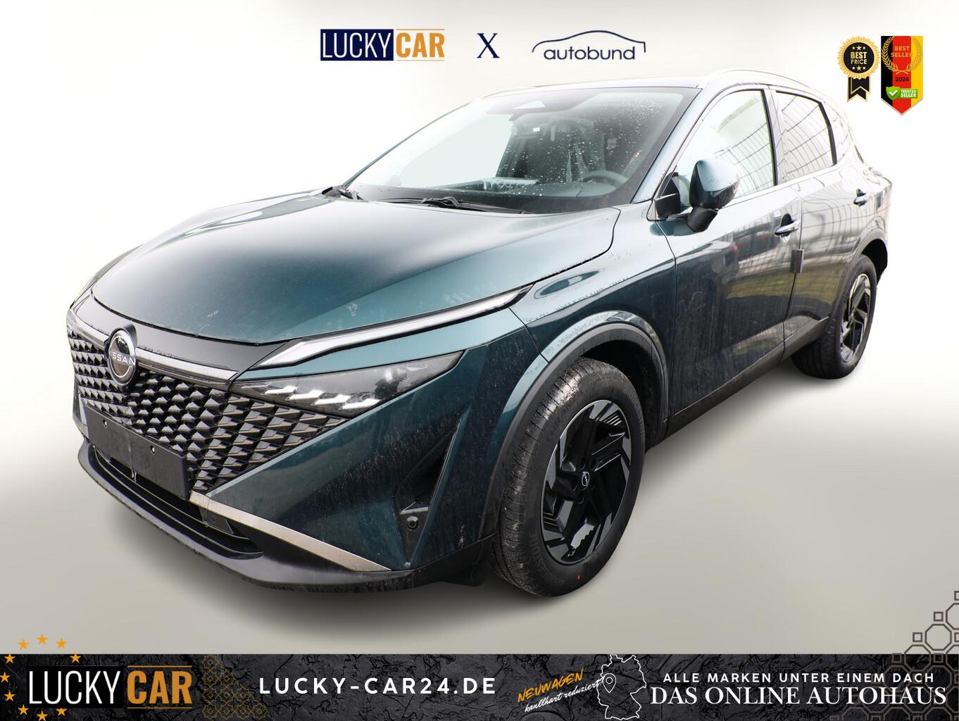 Winter-Paket (Lenkrad heizbar / Sitzheizung vorn / Frontscheibe heizbar), 6 Lautsprecher, Dachträger silber, Fahrassistenz-System: Bremsassistent, Fahrassistenz-System: Spurverlassenswarnung, Fahrassistenz-System: Stau-Pilot, Getränkehalter vorn, Induktionsladeschale für Smartphone, Lenkrad heizbar, LM-Felgen 18 Zoll, Nissan Herstellgarantie 3 Jahre / 100.000km, Radioempfang digital (DAB), Reifen 235/55 R18, Wegfahrsperre, Zentralverriegelung mit Fernbedienung, Ausstattungs-Paket: Nissan Connect Navigationssystem mit Around View Monitor (Smartphone kabellose Schnittstelle (Apple CarPlay & Android Auto) / Sprachbediensystem Spracherkennung / Kamerasystem Around View / Service-System: Google Services / Service-System: Nissan Connect Services / Einparkhilfe vorn und hinten), Schließ-/Startsystem intelligent key (Keyless-Entry / Start-Stop-Knopf), Lenkrad (Leder) mit Multifunktion (Audiobedienung am Lenkrad), Ambiente-Beleuchtung, Dachantenne im Haifischflossen-Design, Elektr. Bremskraftverteilung (EBD), Geschwindigkeits-Begrenzeranlage, Innenspiegel mit Abblendautomatik, Instrumentenanzeige TFT-Farbdisplay (12,3 Zoll), Karosserie: 5-türig, Kofferraumbeleuchtung, Lendenwirbelstütze Sitz vorn links, elektr. verstellbar, Lenksäule (Lenkrad) höhen-/längsverstellbar, Mild-Hybrid 116 kW (Motor 1,3 Ltr. - 116 kW DIG-T MHEV), Mittelarmlehne hinten mit Getränkehalter, Notbrems-Warnblinkautomatik, Parkbremse elektrisch, Schalt-/Wählhebelgriff Leder, Scheibenwischer mit Intervallschaltung, Sitz vorn links höhenverstellbar, Sitz vorn rechts höhenverstellbar, Sonnenblenden mit Spiegel (beleuchtet), Steckdose (12V-Anschluß) in Mittelkonsole, Touchscreen-Farbdisplay (12,3 Zoll), Navigationssystem, USB-Anschluss im Fond, USB-Schnittstelle, Anti-Blockier-System (ABS), Fahrassistenz-System: Moving Object Detection (MOD, Fußgängererkennung und bewegliche Objekterkennung), Antriebsart: Frontantrieb, Elektron. Stabilitäts-Programm (ESP), Getriebe Automatik stufenlos - X-Tronic-CVT, Klimaautomatik 2-Zonen, Airbag Fahrer-/Beifahrerseite, Fensterheber elektrisch vorn + hinten, Isofix-Aufnahmen für Kindersitz, Rücksitz geteilt/klappbar, Seitenairbag, Verglasung hinten abgedunkelt, Fahrmodusschalter, Around View Monitor (360° Umgebungsansicht), Auto-Hold-Funktion, Fahrassistenz-System: Auffahrwarnsystem (Forward Collision Warning, FCW), Fahrassistenz-System: Berganfahr-Assistent, Fahrassistenz-System: Verkehrszeichenerkennung, Geschwindigkeits-Regelanlage (Tempomat) mit Abstandsregelung, Fahrassistenz-System: Sicherheitssystem ERA GLONASS mit automatischem Notruf, Lenkrad mit Schaltwippen/-tasten, Außenspiegel elektr. anklappbar, Außenspiegel elektr. verstell- und heizbar, Automatische Fahrlichtschaltung, Fahrassistenz-System: Fernlichtassistent, Fahrassistenz-System: Totwinkel-Assistent, Heckleuchten LED, Scheibenwischer mit Regensensor, Scheinwerfer LED, Fahrassistenz-System: aktiver Spurhalteassistent, mit korrigierendem Bremseingriff, Fahrassistenz-System: Autonomer Notbrems-Assistent, Fahrassistenz-System: Müdigkeitserkennungs-Sensor, Fahrassistenz-System: Querverkehrs-Assistent Heck (Rear Cross Traffic Alert, RCTA), Reifendruck-Kontrollsystem, Start/Stop-Anlage