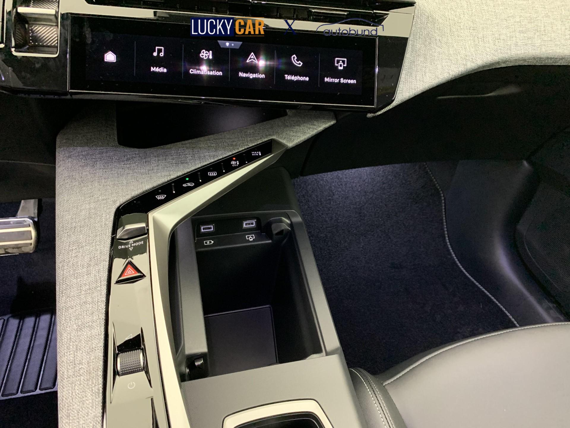 • PEUGEOT i-Connect Advanced 3D-Navigation, 4 USB-Anschlusse: 1 USB C-Anschluss (Data & Charge) und 1 USB C-Anschluss (Charge) vorne, 2 USB C-Anschlusse (Charge) hinten.