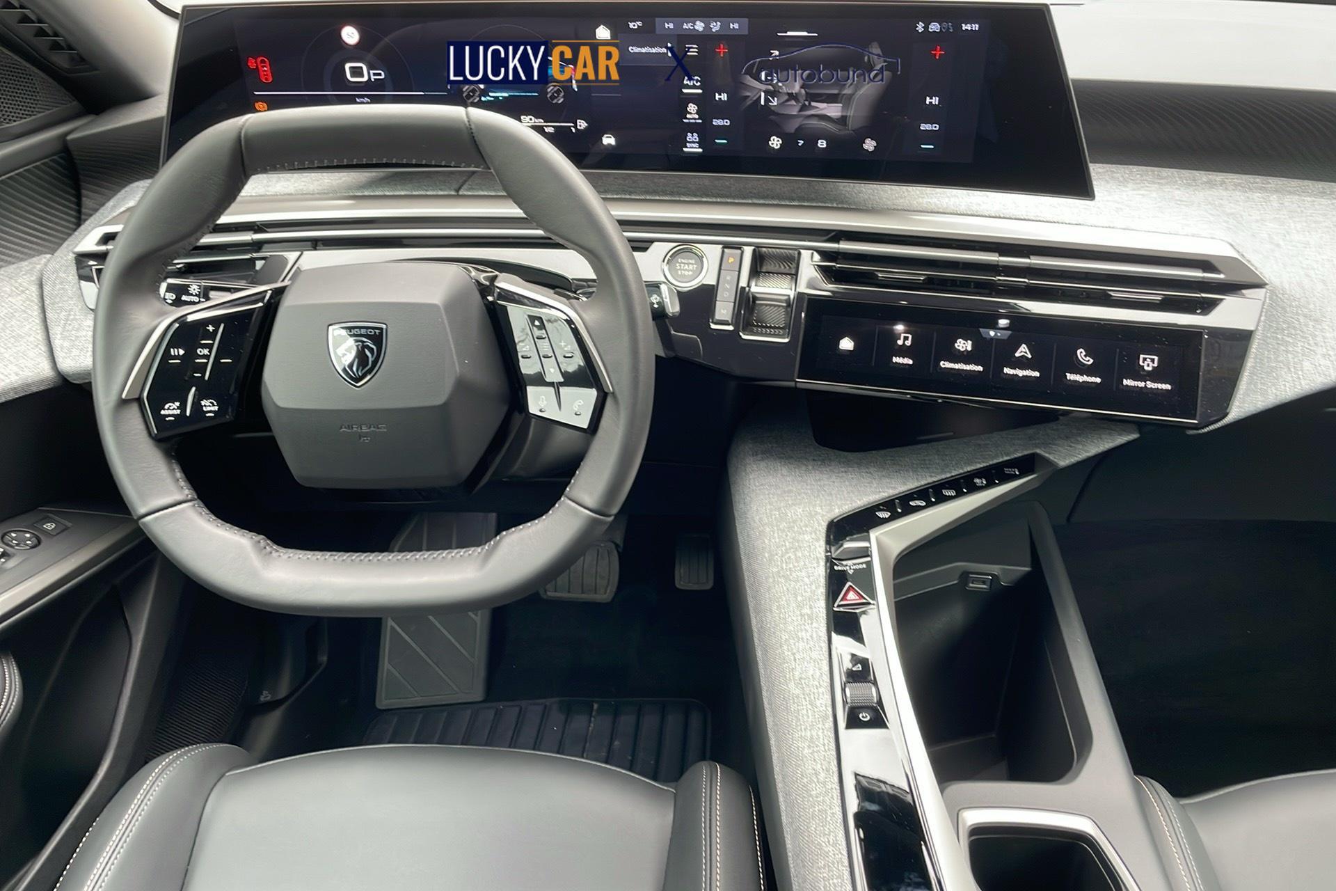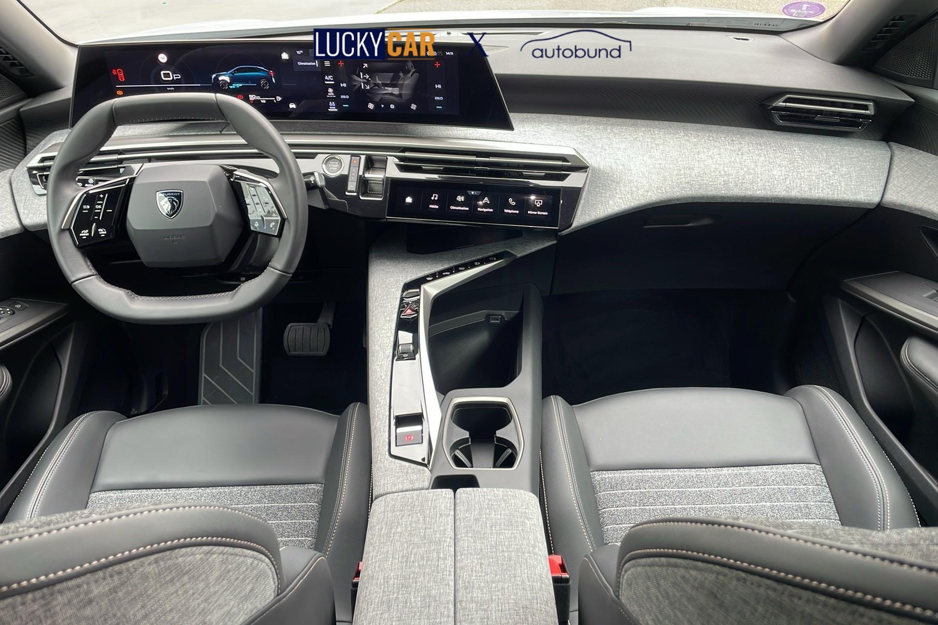• Panoramic Navigation Pack PEUGEOT i-Cockpit mit gebogenem, schwebendem 21-HD-Bildschirm, virtuelle PEUGEOT i-Toggles mit 10 anpassbaren Schnellzugriffstasten, PEUGEOT i-Connect Advanced: Vernetzte 3D-Navigation: 3 USB-Anschlusse: 1 USB-C-Anschluss (Daten & Laden) vorne, 2 USB-C-Anschlusse (Laden) hinten, 2 12-V-Anschlusse (Mittelkonsole, Kofferraum) Connect Plus (6-monatiges Abonnement inklusive) Kabelloses Laden des Smartphones (15 W): Kabelloses Laden des Smartphones (Leistung 15 W) PEUGEOT i-Cockpit mit gebogenem, schwebendem 21-HD-Bildschirm Virtuelle PEUGEOT i-Toggles mit 10 personalisierbaren Schnellzugriffen PEUGEOT i-Connect Advanced Vernetzte 3D-Navigation, 4 USB-Anschlusse: 1 USB-C-Anschluss (Daten & Laden) und 1 USB-C-Anschluss (Laden) vorne, 2 USB-C-Anschlusse (Laden) hinten PEUGEOT i-Connect Advanced - Connect Plus: Vernetzte Spracherkennung in naturlicher Sprache, Chat - GPT (spater verfugbar) Sicherheitsdienste: Vernetzte Alarmanlage (wenn das Fahrzeug mit einer Alarmanlage ausgestattet ist) Fernbedienungsdienste (E Remote Control, Remote Control, Find My Car, My Trip Report, Peugeot Skill for Alexa), Navigationsfunktionen (Verkehrsinformationen in Echtzeit, Wettervorhersagen, Parkplatze, TomTom-Suche, Geschwindigkeitsbegrenzungen, Kraftstoffpreise, Over-the-Air-Kartenaktualisierung, Send to Nav, Geofenci