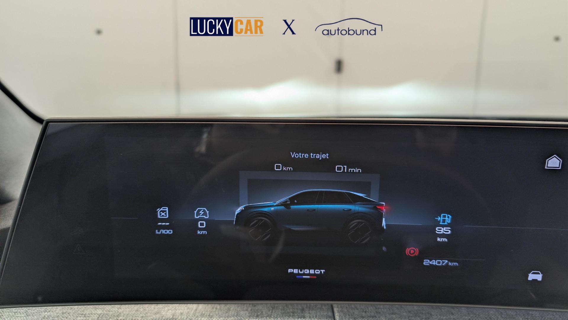 • Panoramic Navigation-Paket: Kabelloses Smartphone-Ladegerat (Leistung 15 W) Virtuelle PEUGEOT i-Toggles mit 10 personalisierbaren Schnellzugriffen PEUGEOT i-Connect Advanced Connected 3D-Navigation PEUGEOT i-Cockpit mit gebogenem, schwebendem 21-Zoll-HD-Bildschirm