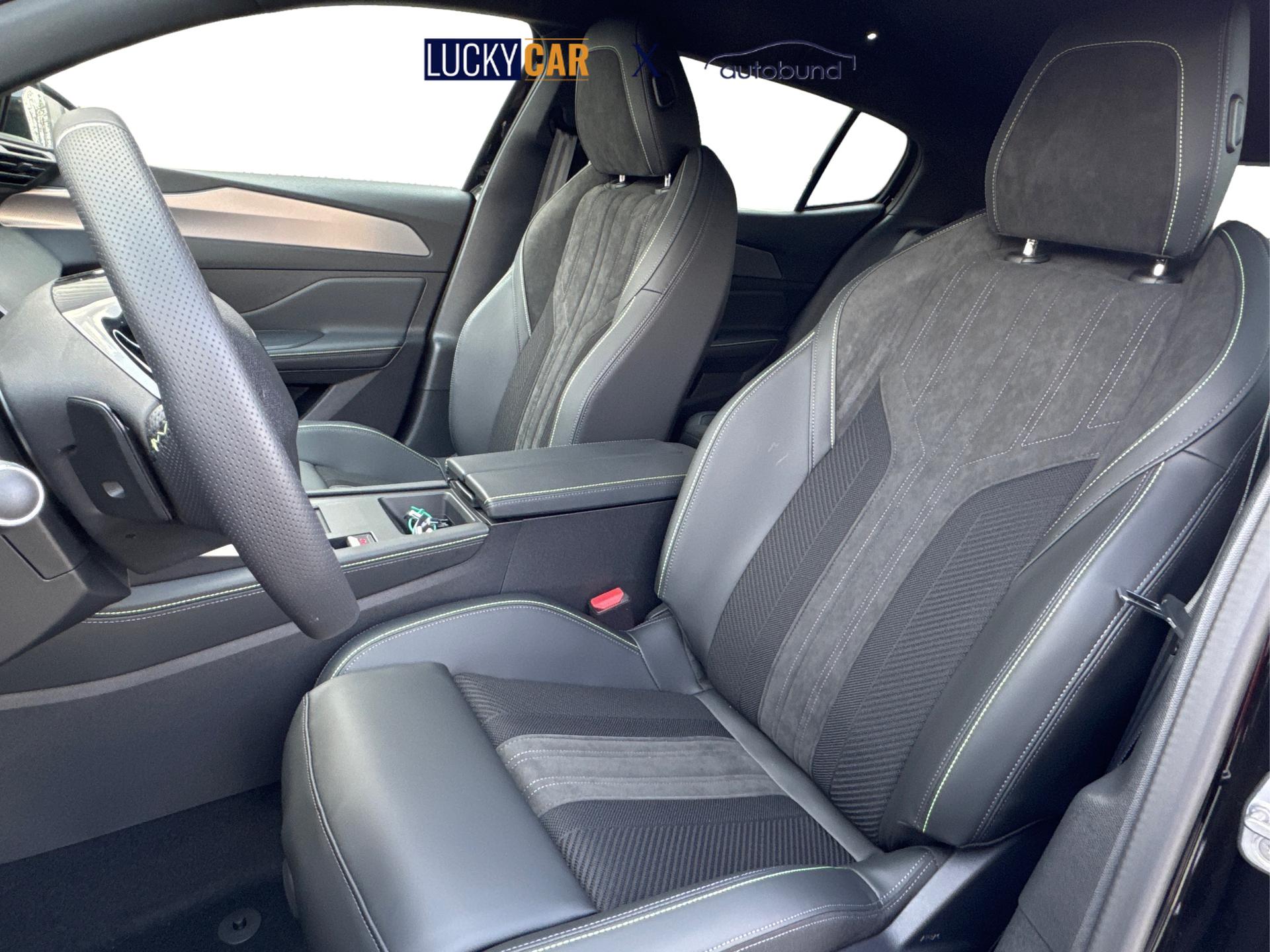 • Innenausstattung DBFXPolsterung: Alcantara / Kunstleder / Stoff in Schwarz mit Ziernähten in Adamin Grün