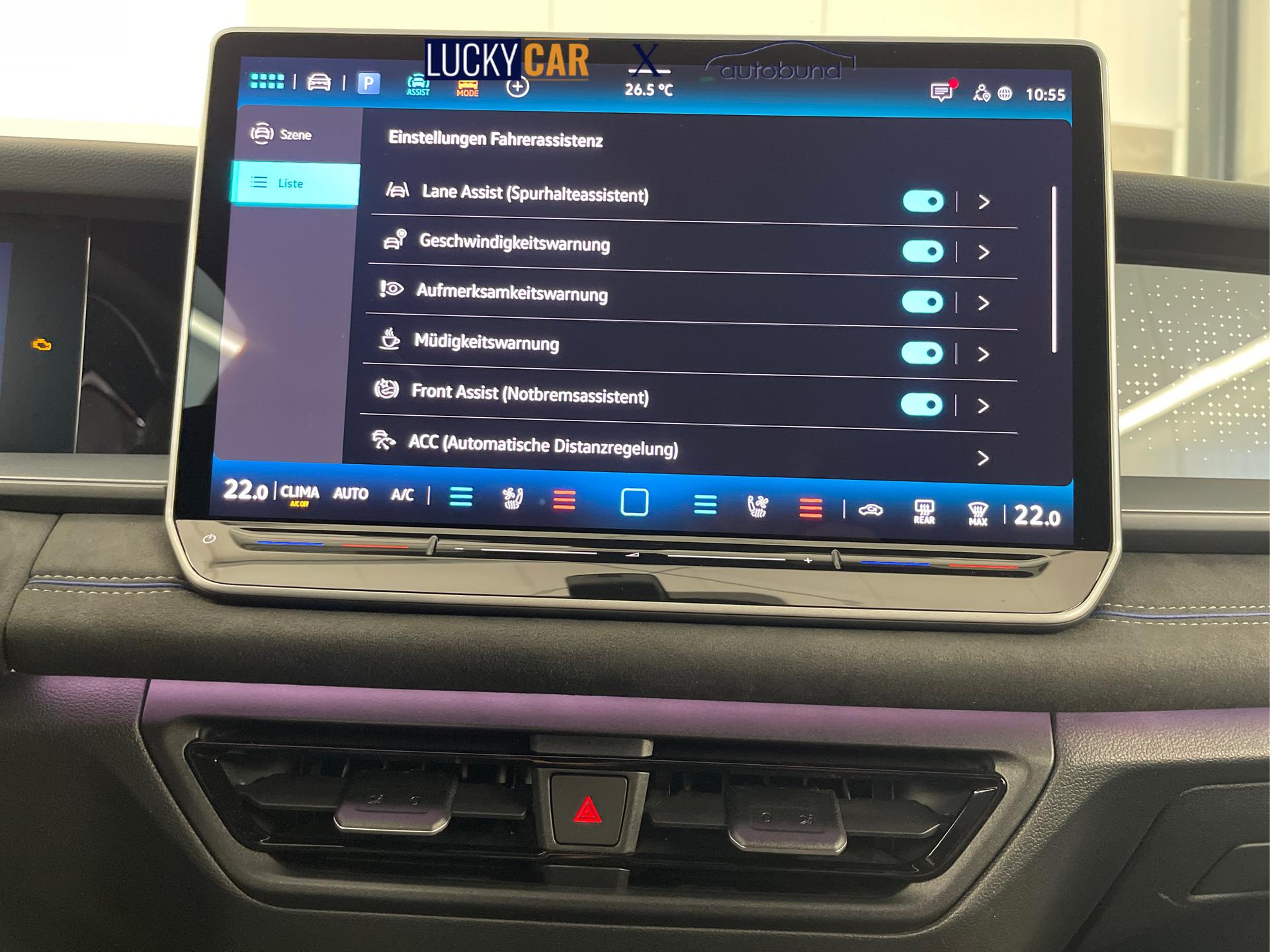 • Assistenzpaket "IQ.Drive" (Travel Assist inkl. Spurhalteassistent, AreaView 360° Kamera inkl. Rückfahrkamera, Spurwechselassistent "Side Assist", Ausparkassistent, Ausstiegswarner)