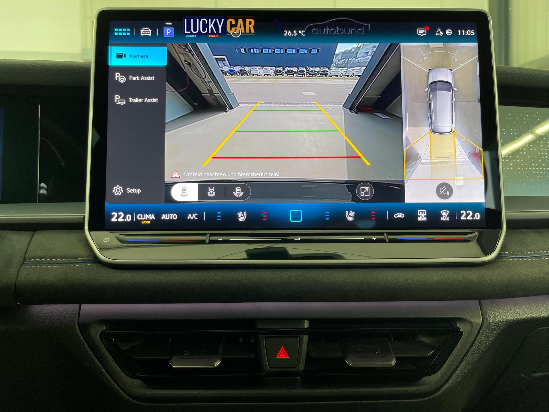 • Einparkhilfe Selbstlenkendes System, Park Distance Control vorne, Park Distance Control hinten, Rückfahrkamera, 360°-Kamera (Surround View), Ausparkassistent, Anhängerrangierassistent